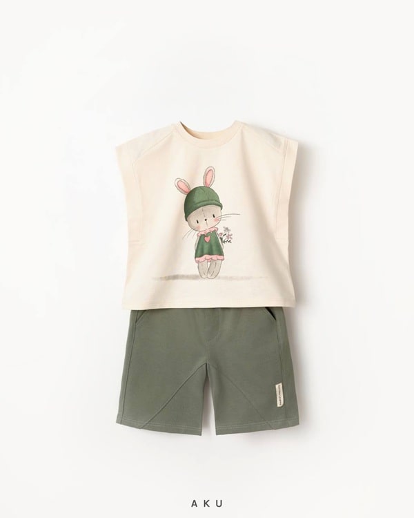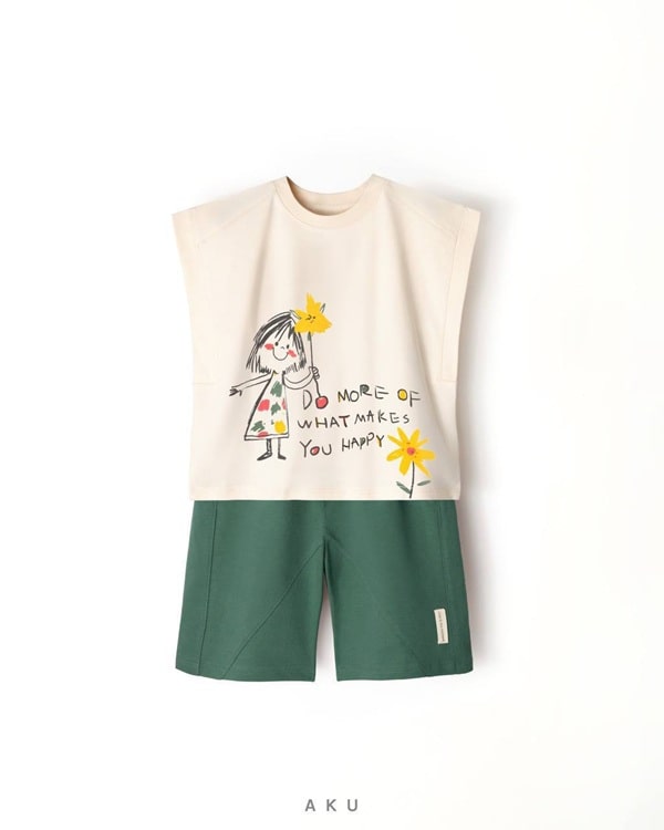ست تیشرت رکابی و شلوارک چاپی دخترانه